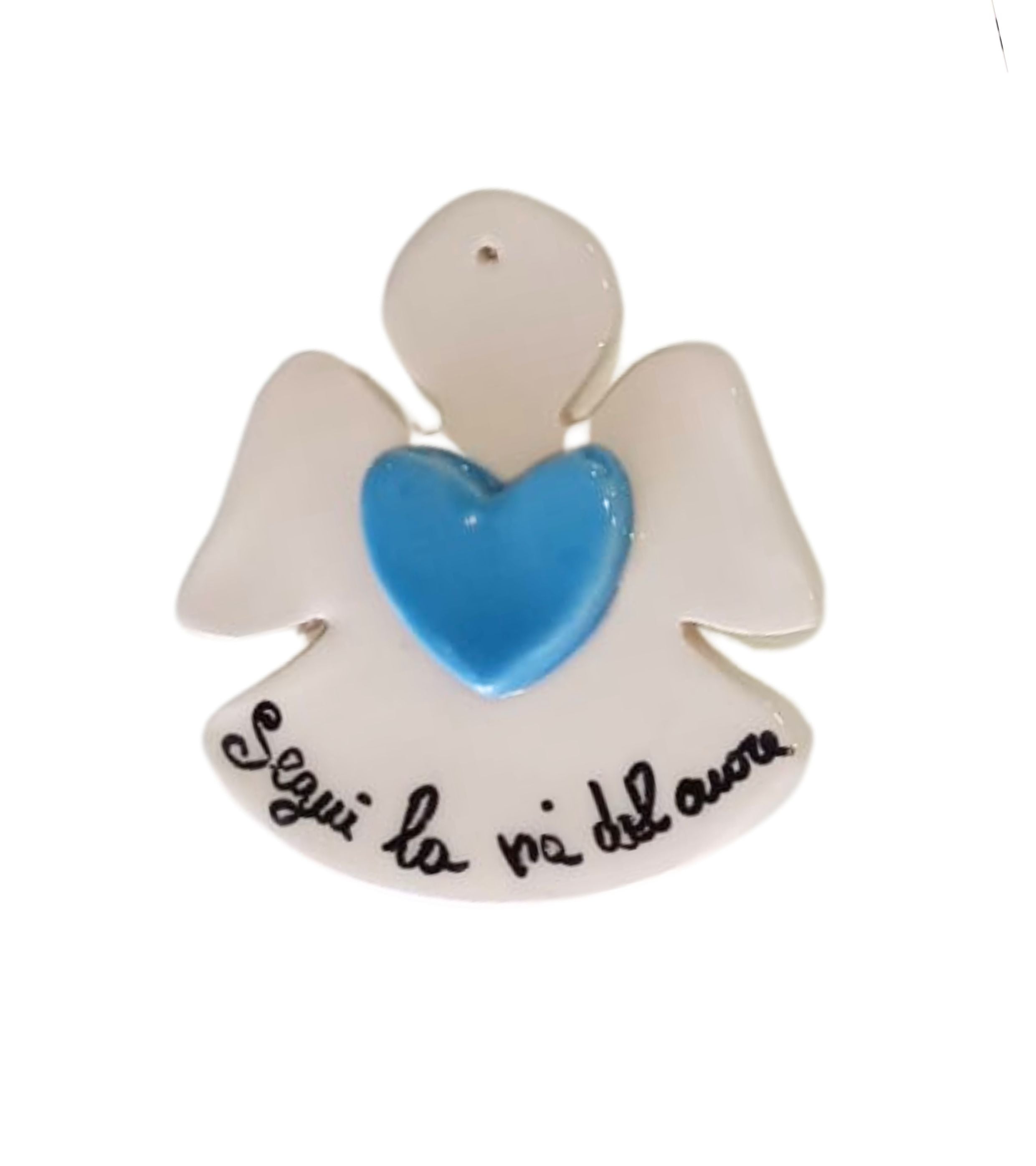 Angelo placchetta in ceramica vietrese con cuore, personalizzabile, realizzato e dipinto a mano dai Maestri Ceramisti con materiali e colori atossici.
