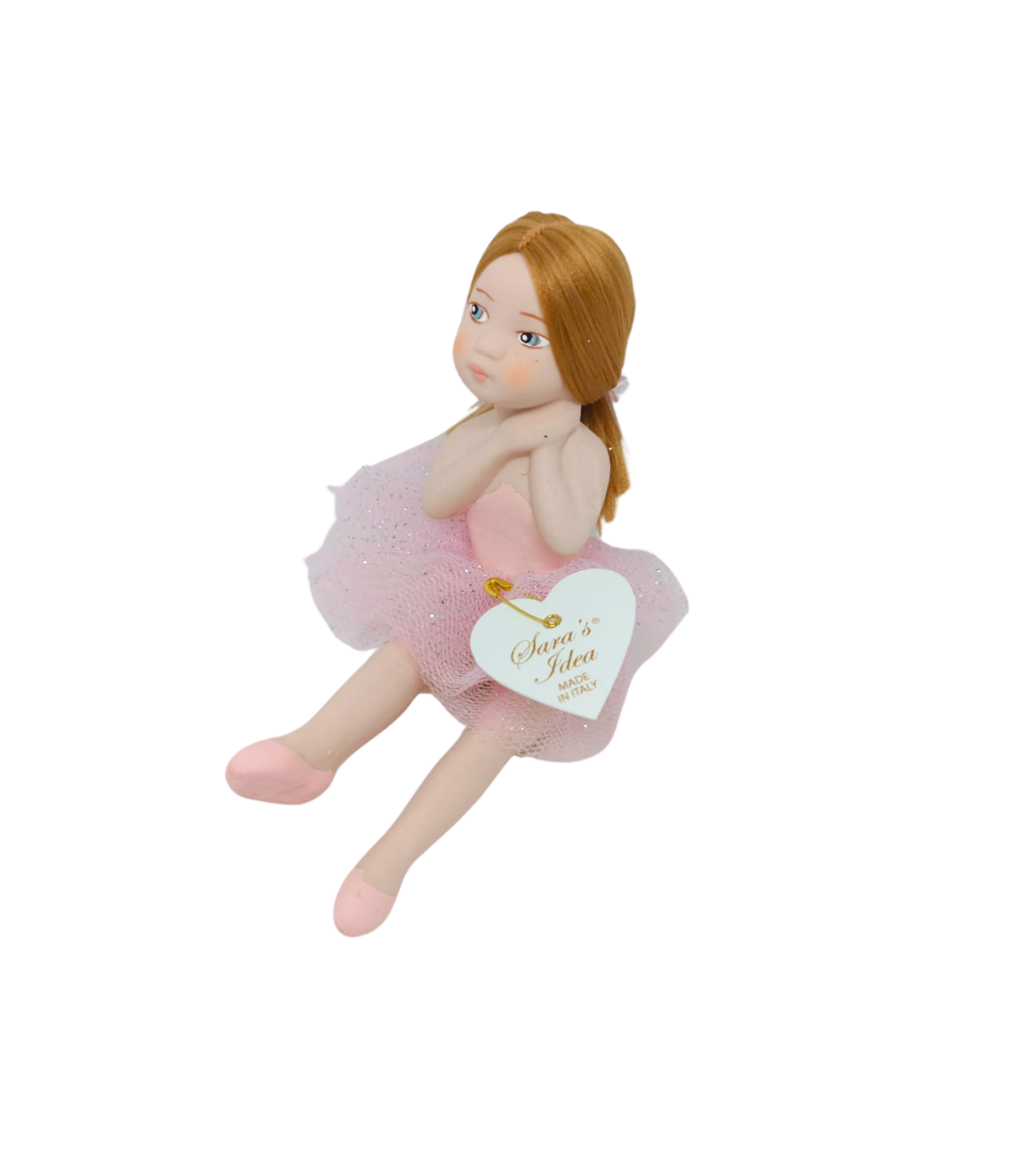Bambolina in ceramica Sara's Idea con tulle, completa di scatola originale, confetti, tag-bigliettino e nastri per il confezionamento.