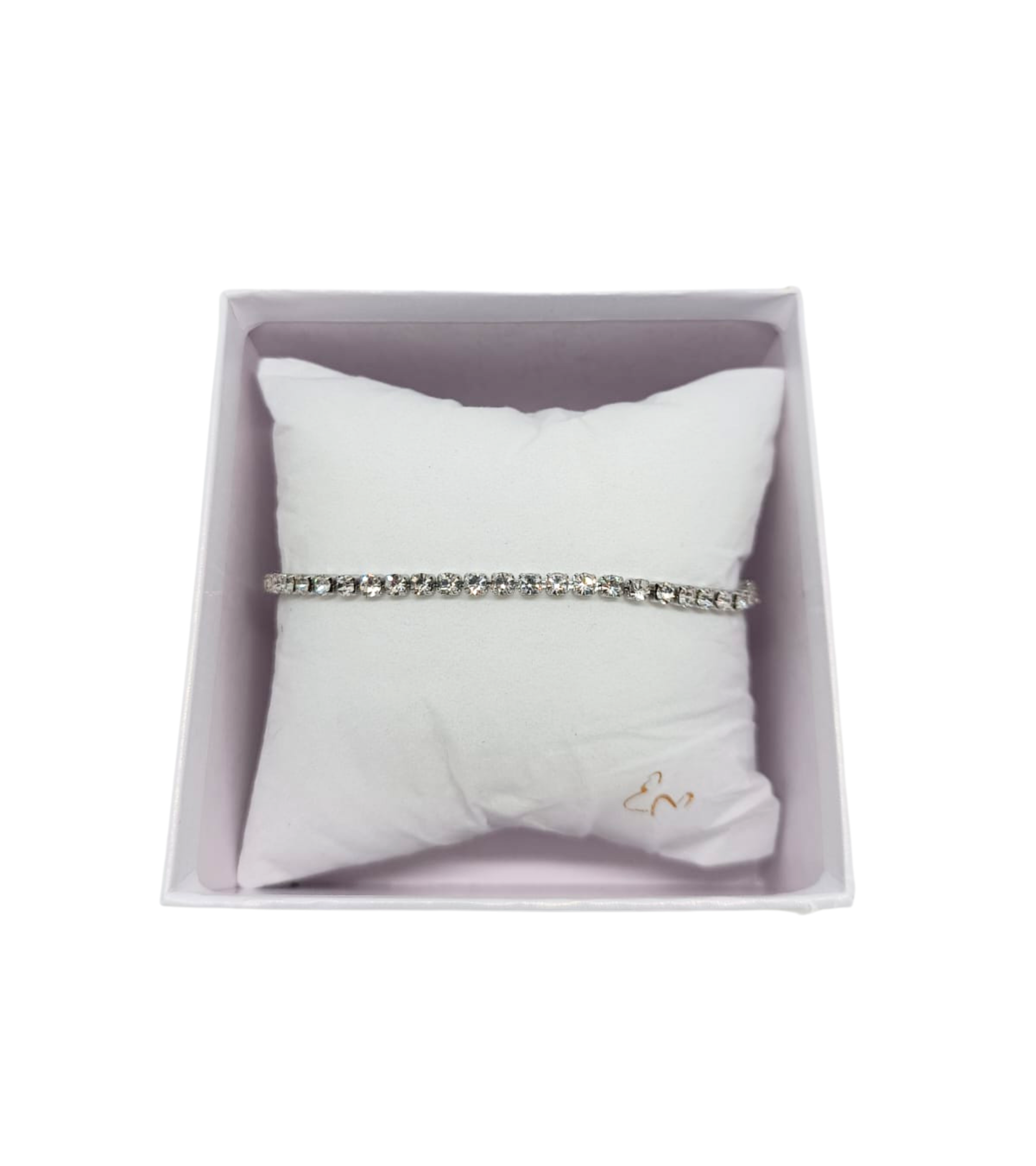 Bracciale tennis completo di scatola originale, confetti, tag-bigliettino e nastri per il confezionamento.