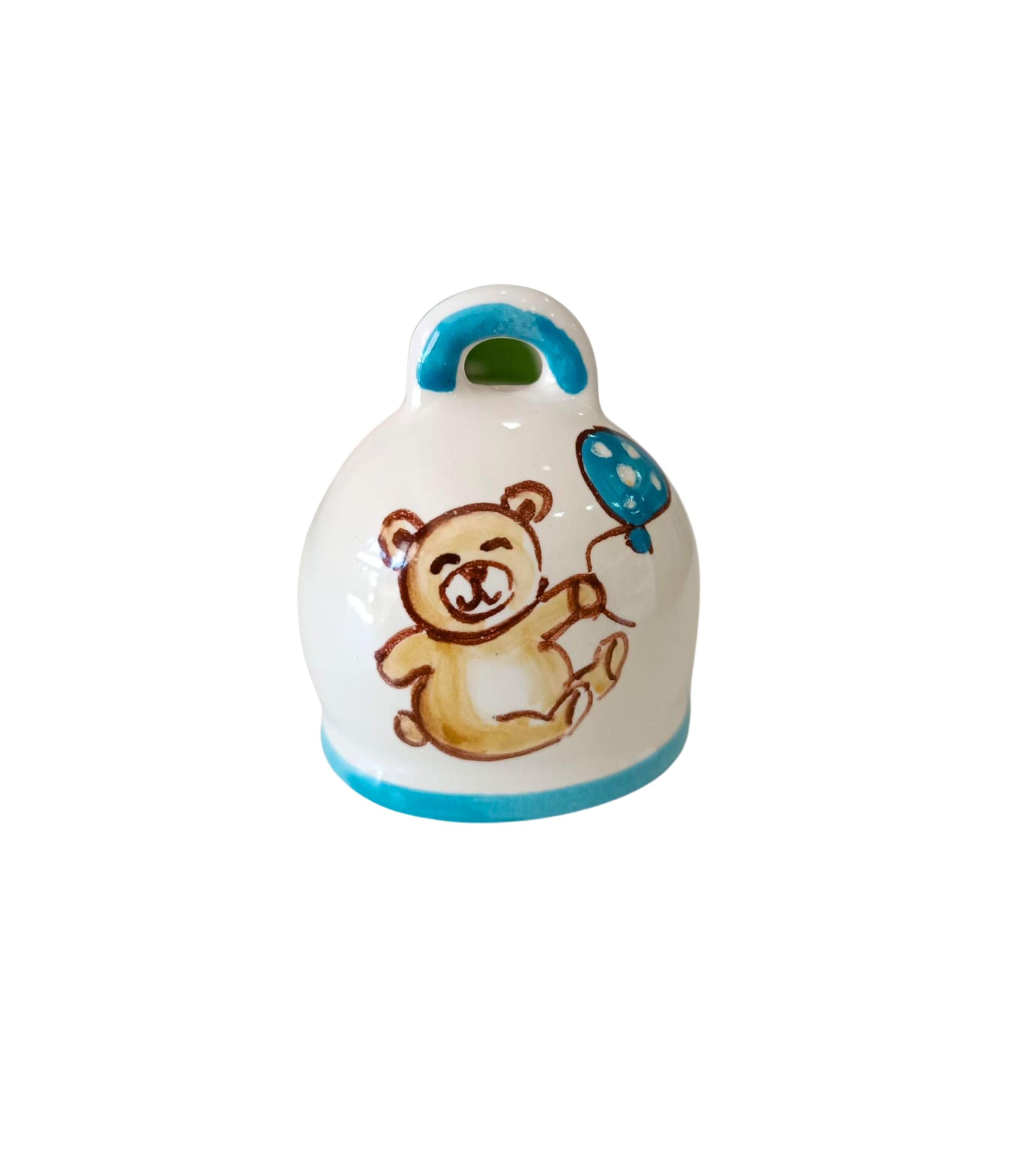 Campana caprese in ceramica vietrese con orsetto, personalizzabile, realizzata e dipinta a mano dai Maestri Ceramisti con materiali e colori atossici.