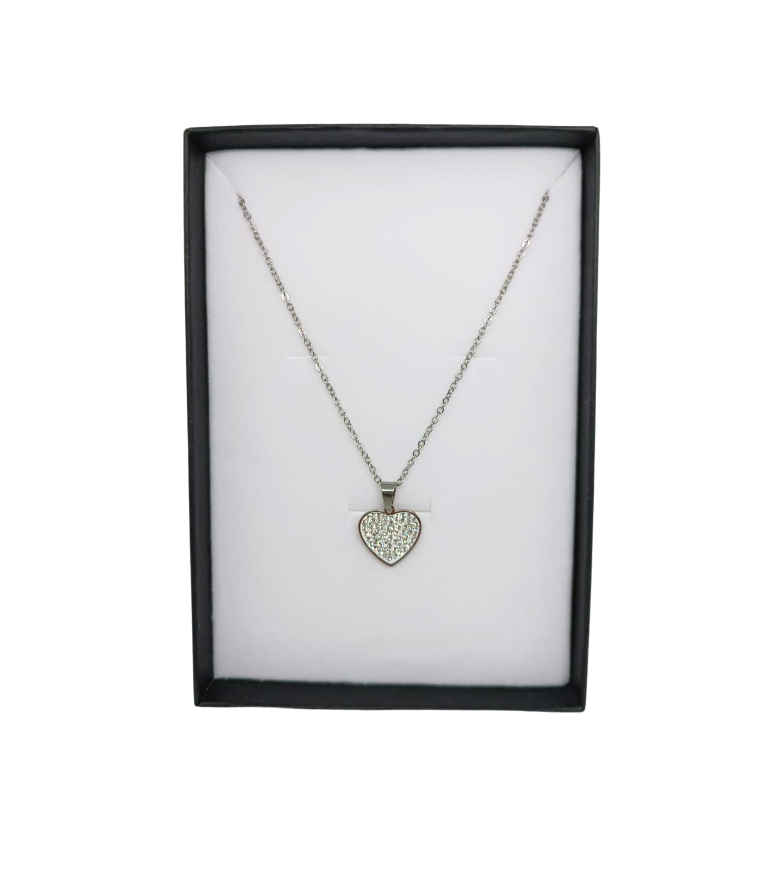 Collana cuore argento con strass completa di scatola originale, confetti e tag-bigliettino.