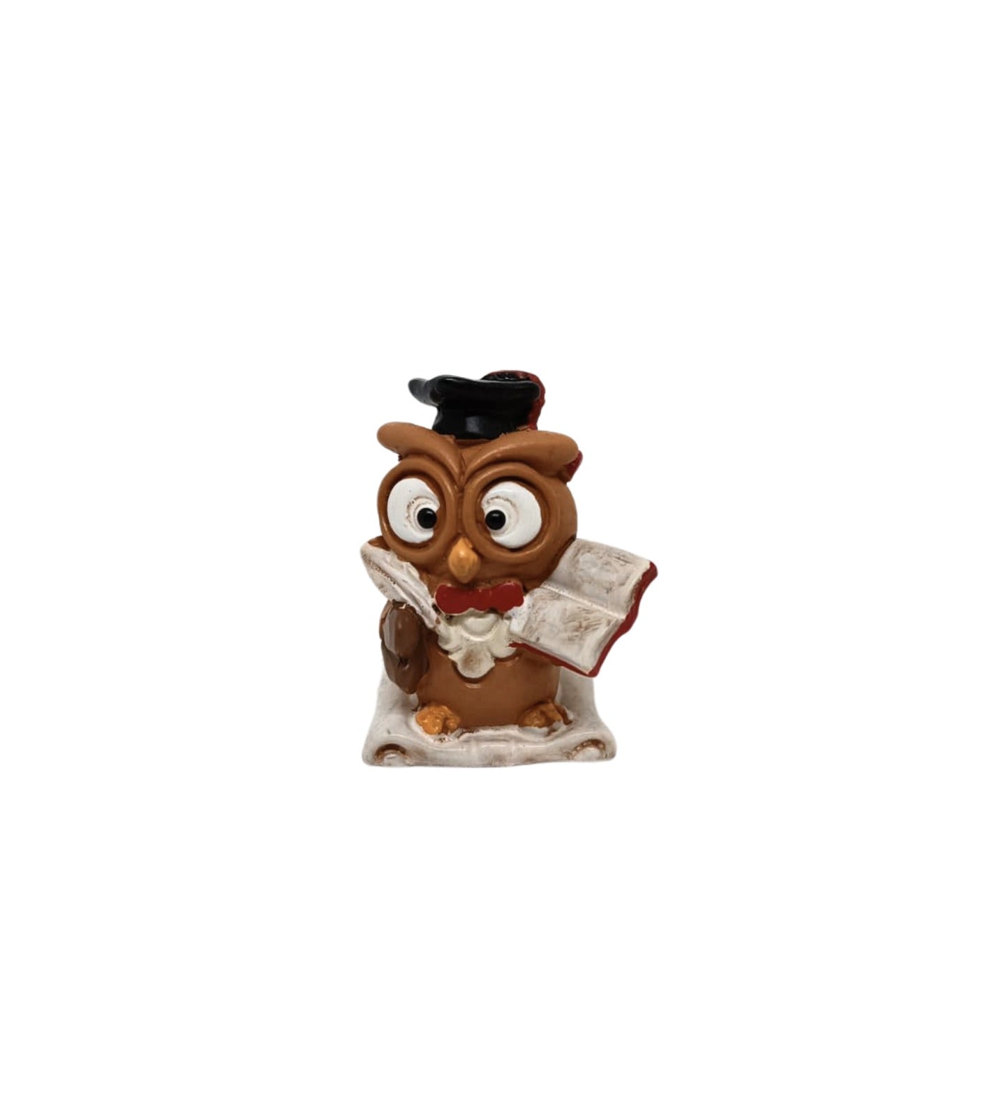 Gufetto laurea della nuova collezione Harmony applicato su fazzoletto rosso, completo di confetti, tag-bigliettino e nastri per il confezionamento.
