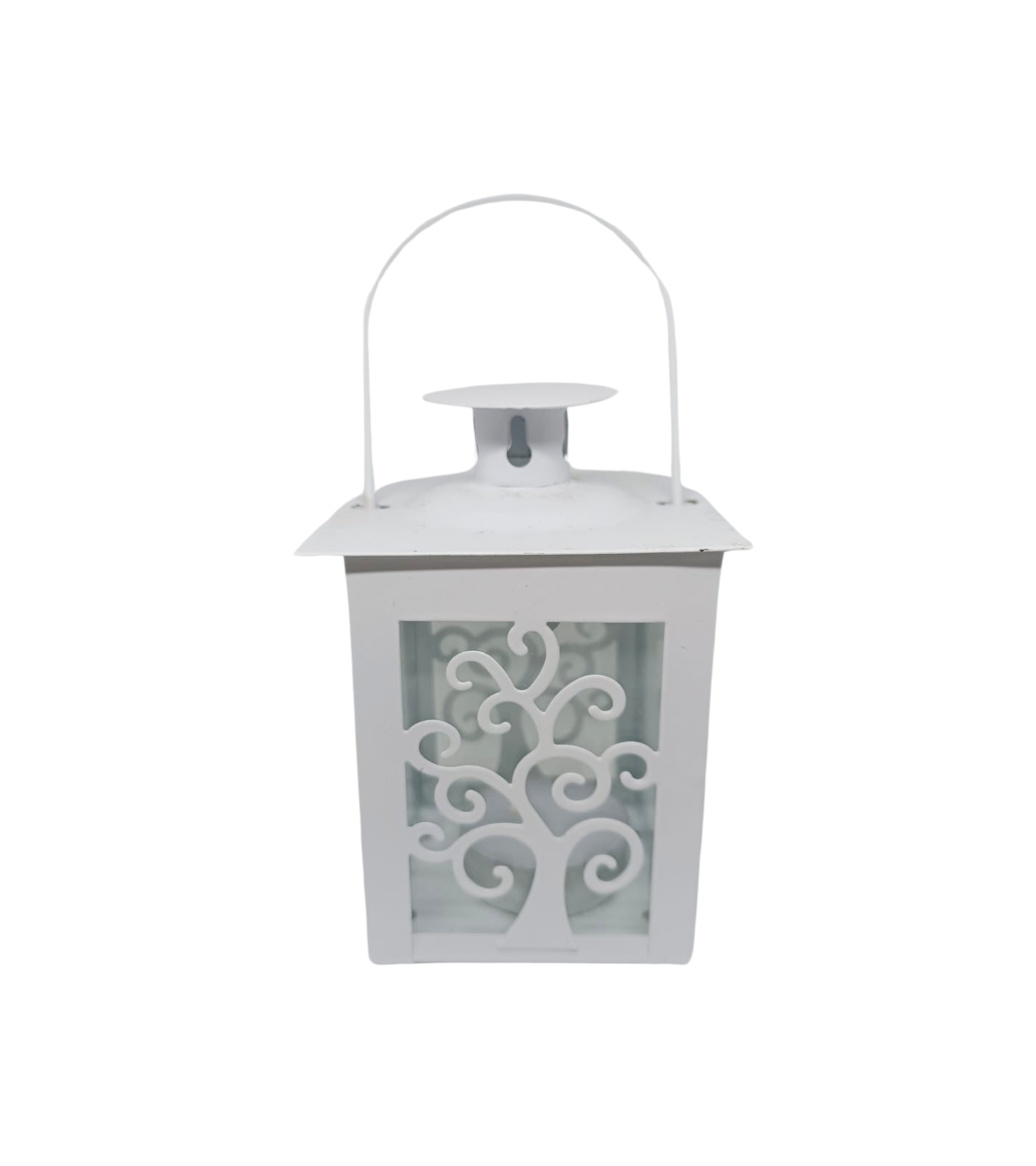 Lanterna con candela, confezionata con confetti e tag-bigliettino. SENZA SCATOLA.