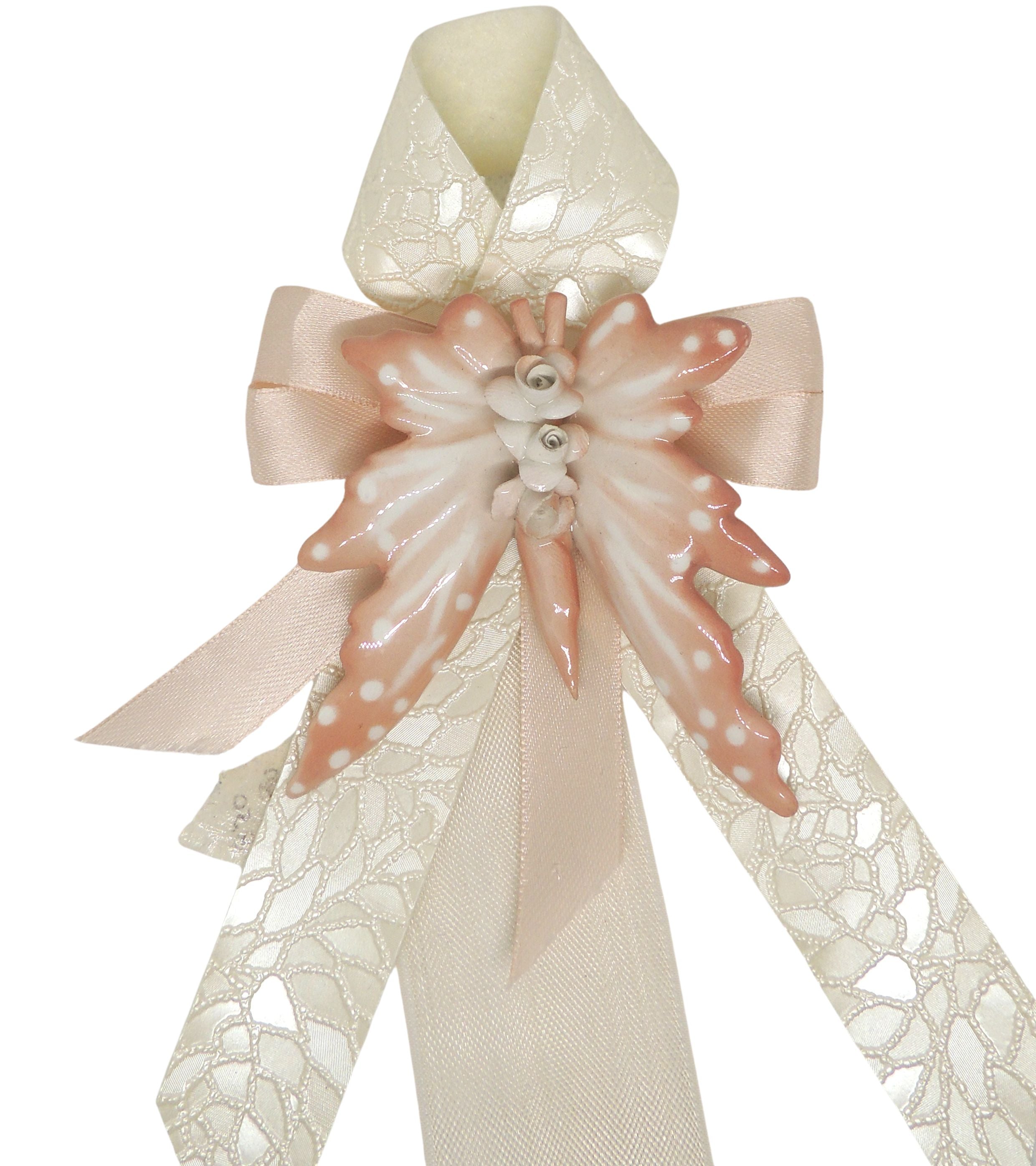 Farfalla con applicazione fiorellini in ceramica di Capodimonte realizzata e dipinta a mano dai Maestri Ceramisti con materiali e colori atossici e con certificato di garanzia che ne attesta l'artigianalità.