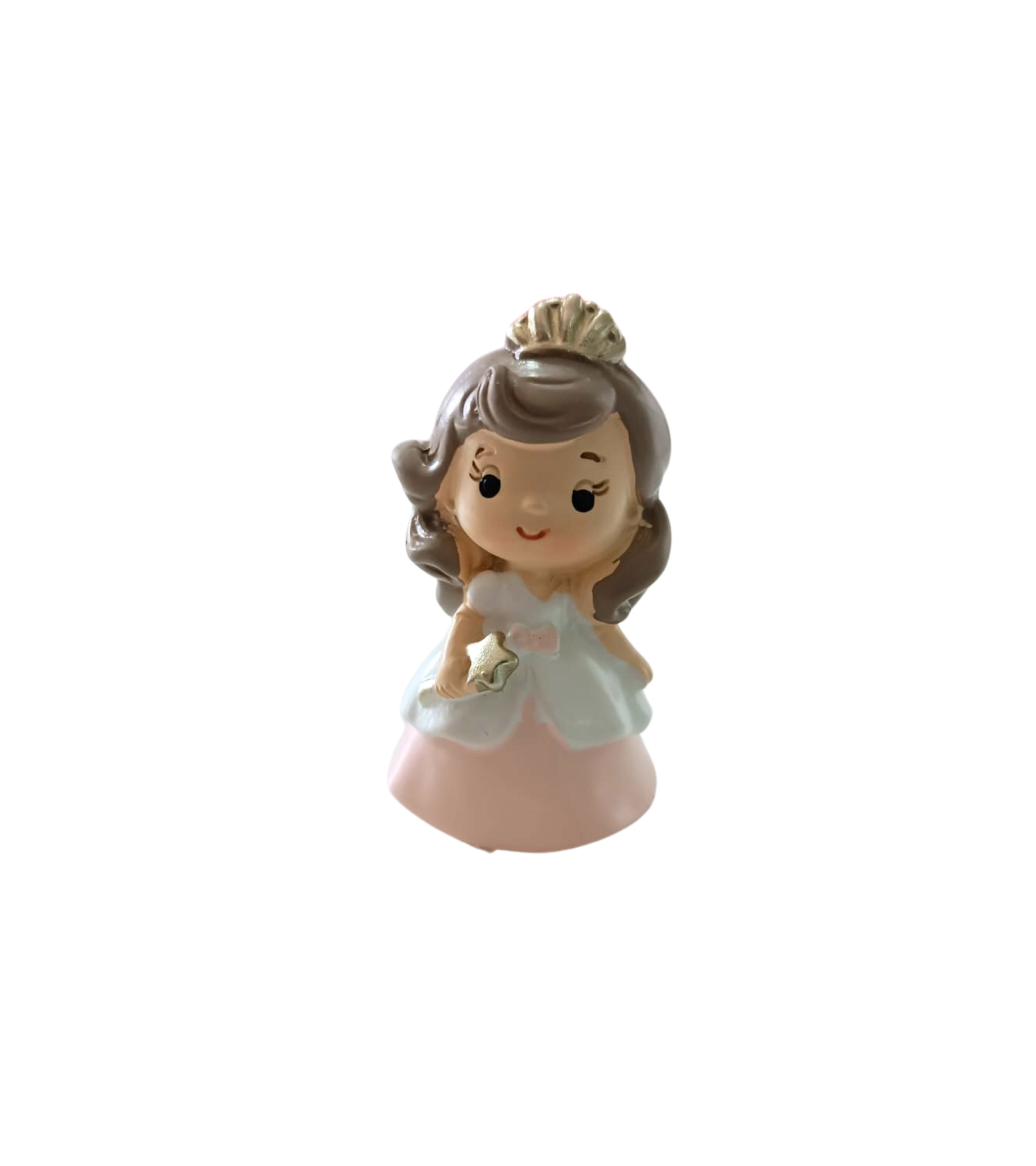 Principessa in resina della nuova collezione Harmony, confezionata su veletto, completo di confetti, tag-bigliettino e nastri per il confezionamento.
