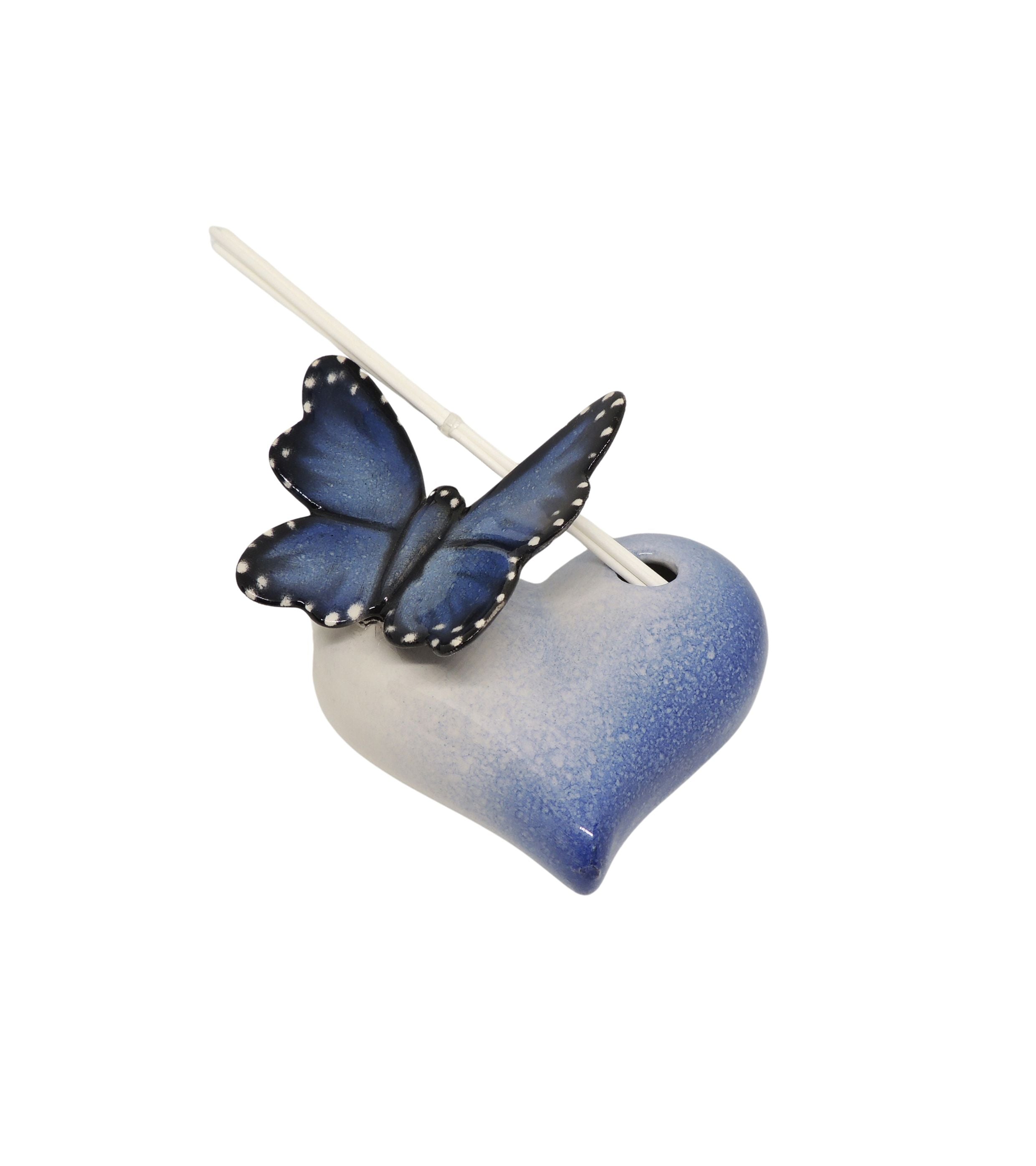 Profumatore a cuore con farfalla in ceramica di Capodimonte, personalizzabile, realizzato e dipinto a mano dai Maestri Ceramisti con materiali e colori atossici.