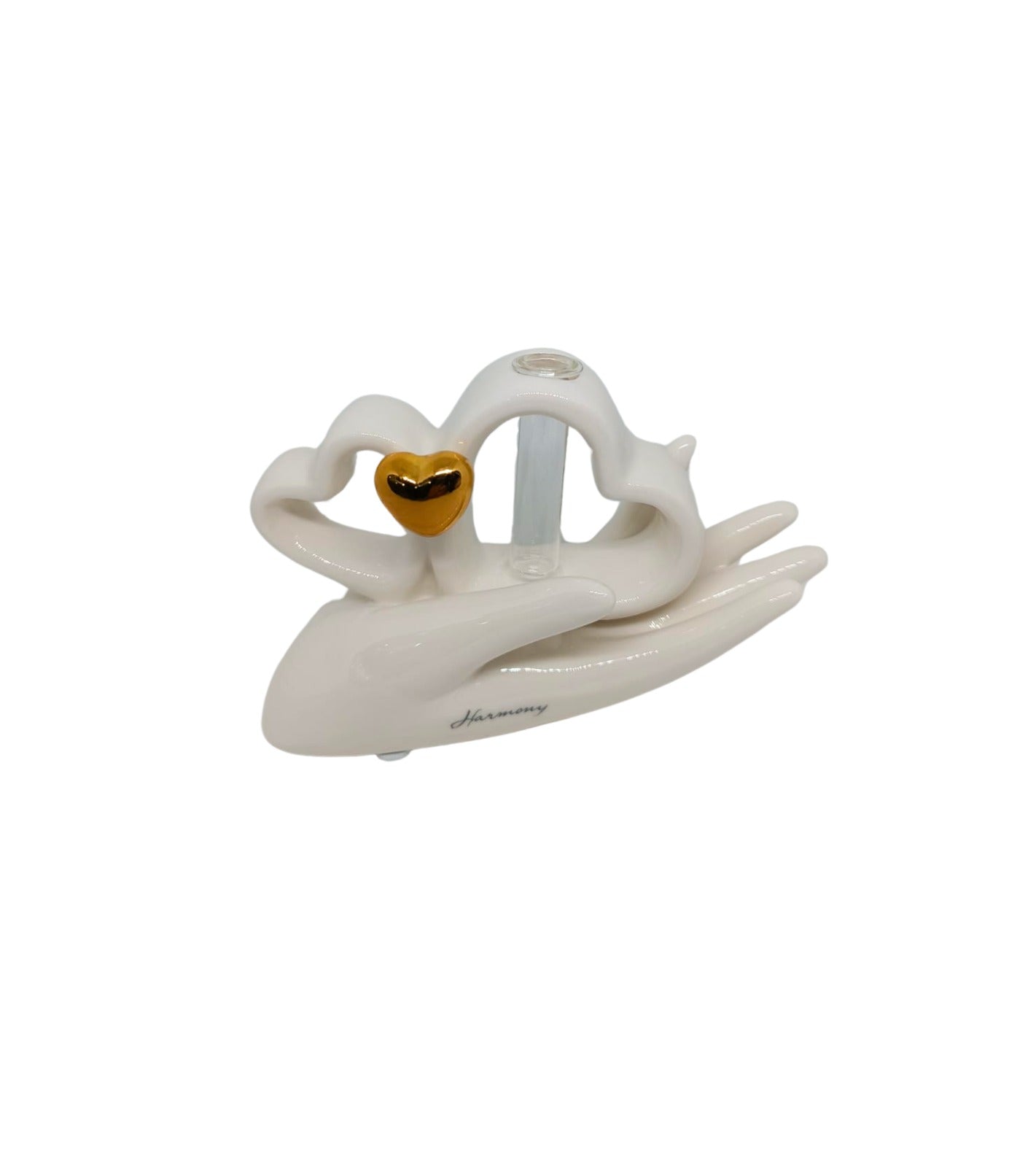 Profumatore in porcella con cuore e pampas in porcellana Harmony confezionato nella sua scatola originale, completo di confetti, tag-bigliettino e nastri per il confezionamento.