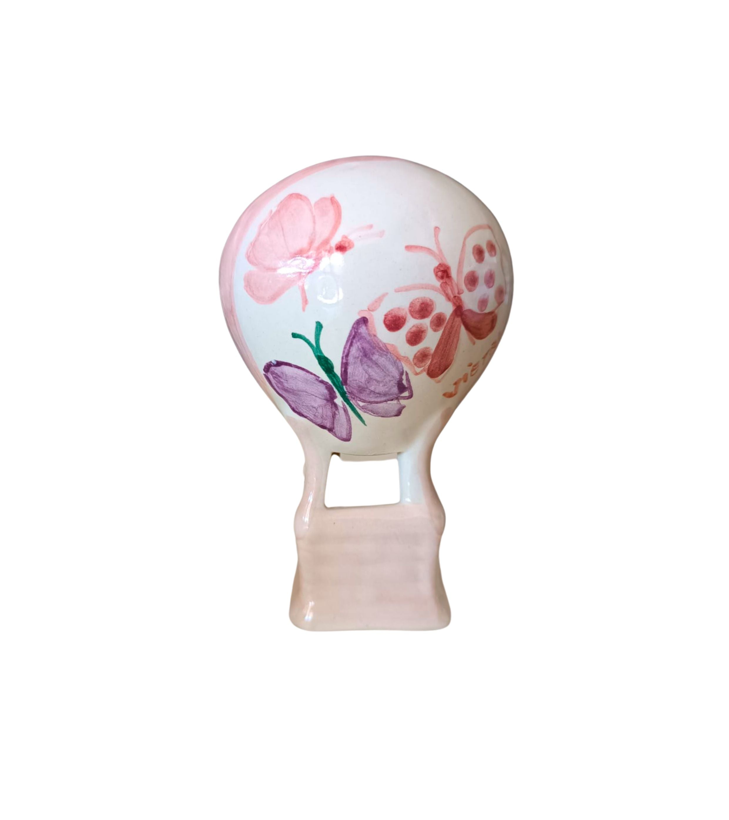 Profumatore mongolfiera con farfalle in ceramica vietrese, personalizzabile, realizzato e dipinto a mano dai Maestri Ceramisti con materiali e colori atossici.