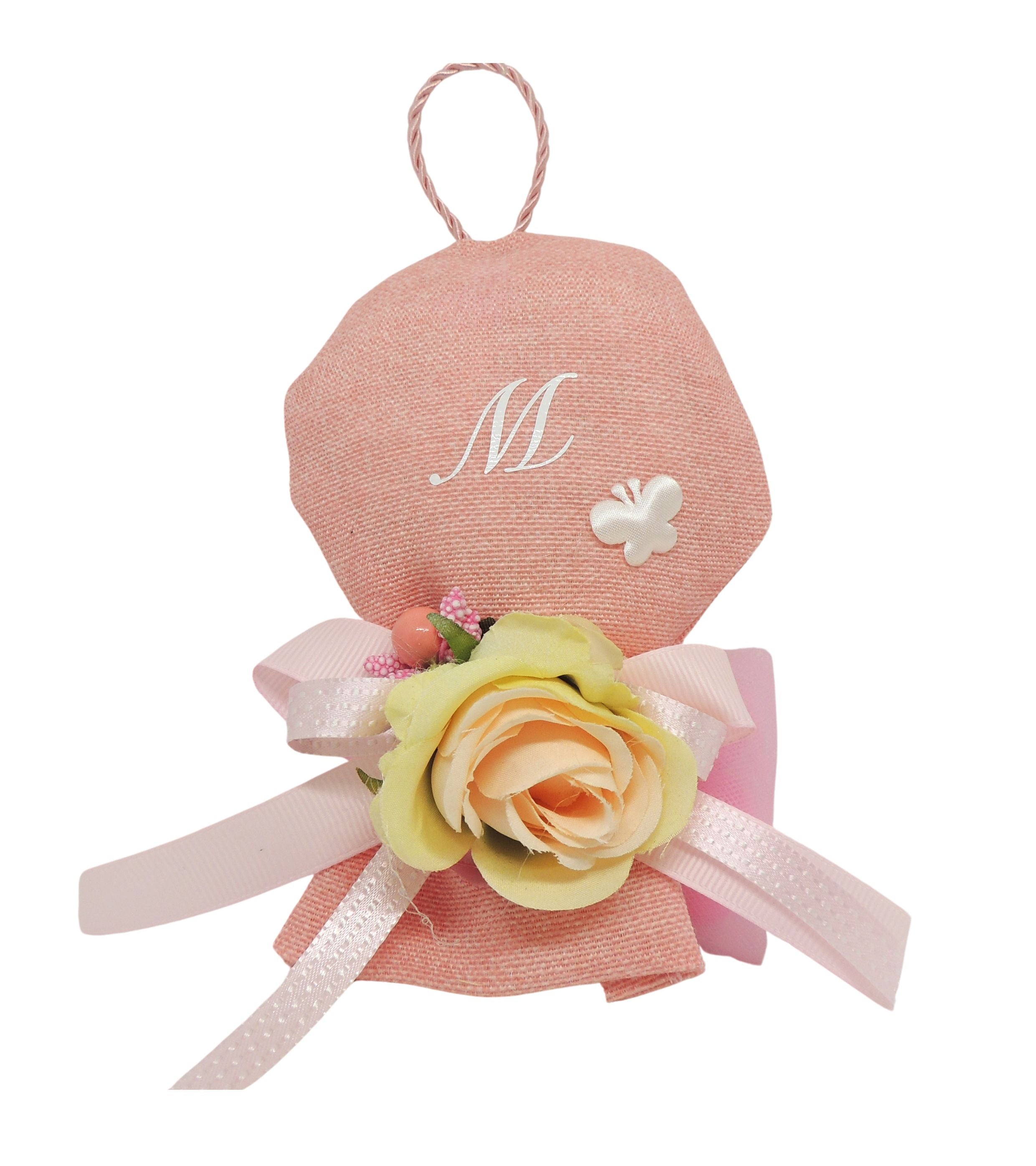 Sacchetti nascita bimba realizzato a mano in cotone color tortora e rosa.