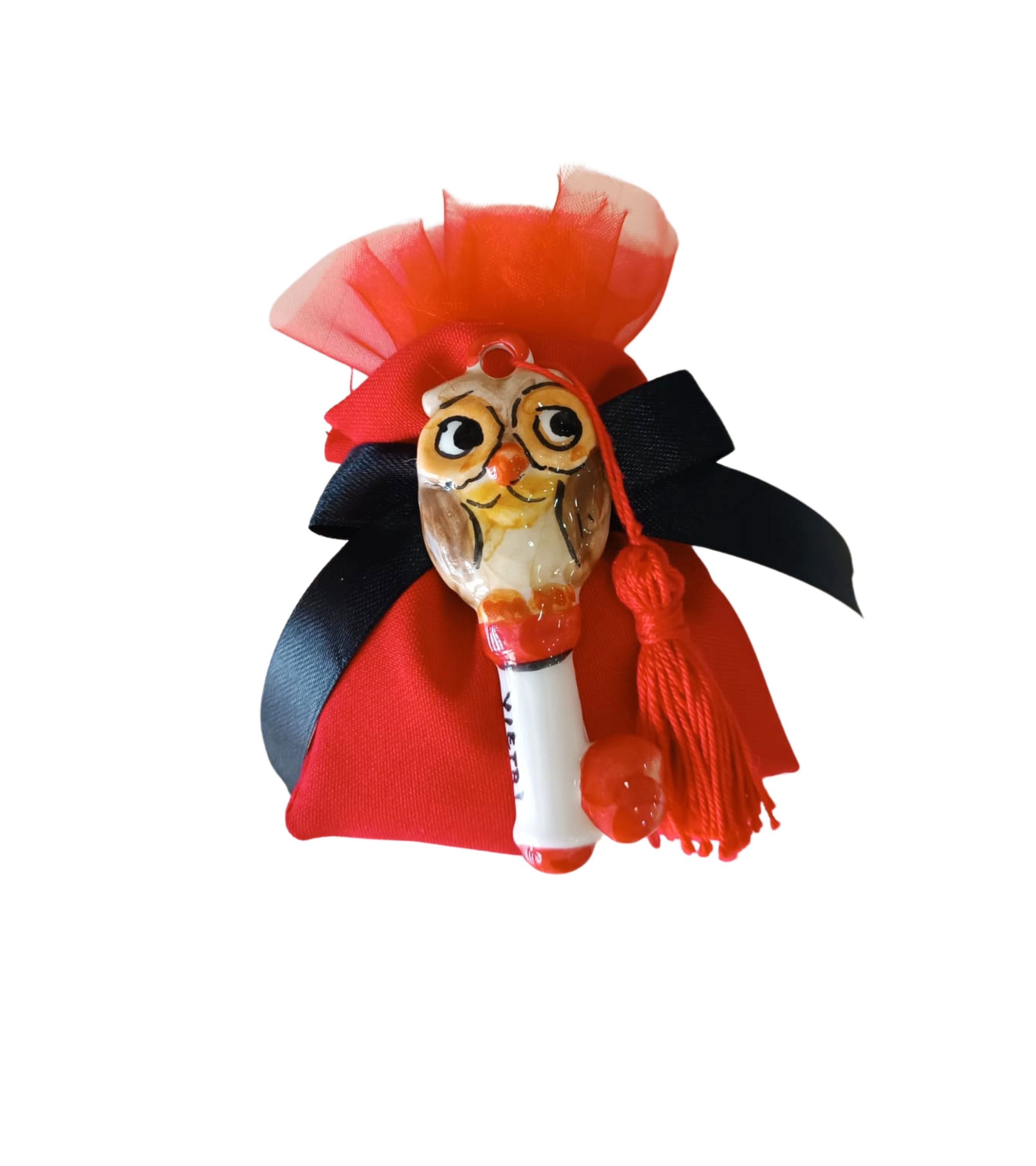 Sacchetto laurea con chiave in ceramica vietrese, realizzata e dipinta a mano dai Maestri Ceramisti con colori atossici.