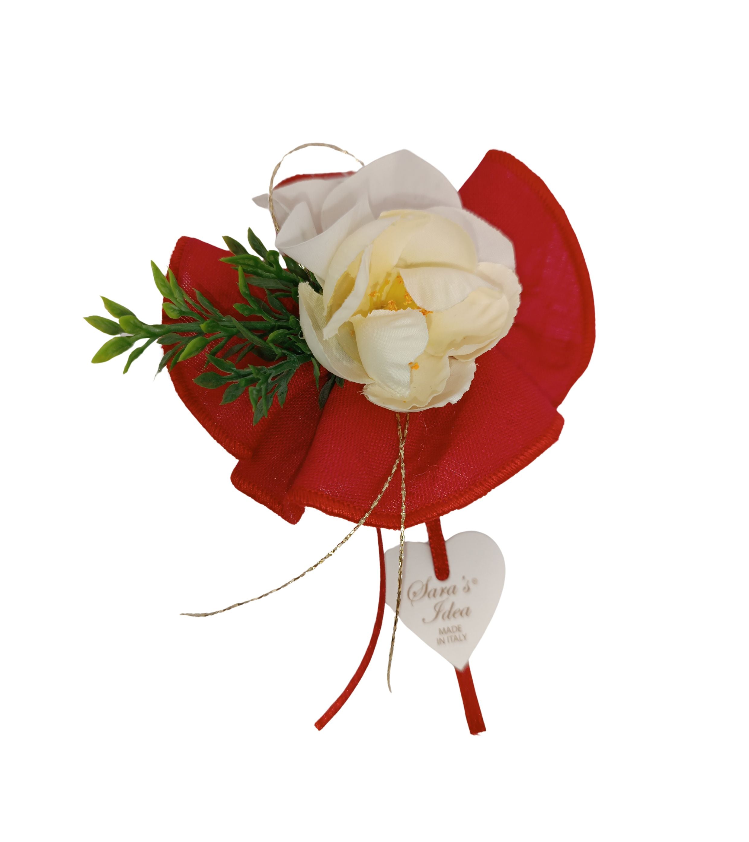 Elegante saponetta naturale profumata Sara's Idea, confezionata con fazzoletto in lino e decorata con peonie.