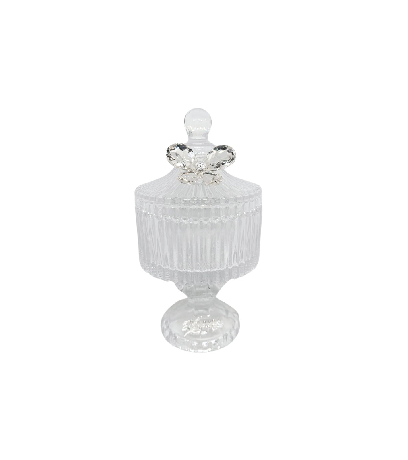 Scatola in cristallo con farfalla della nuova collezione Harmony, confezionata nella sua scatola originale, completa di confetti, tag-bigliettino e nastri per il confezionamento.