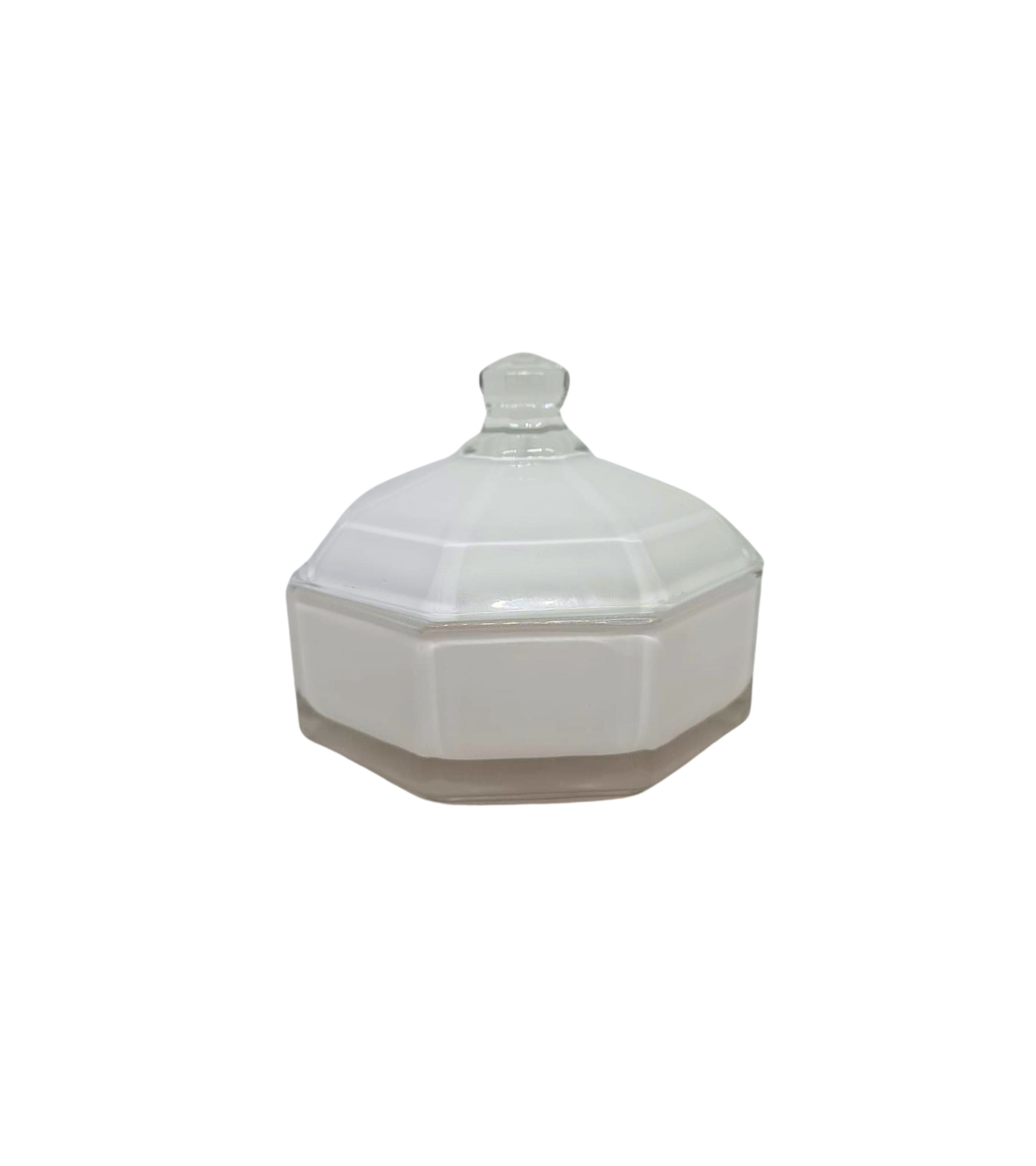Scatola in vetro ottagonale disponibile in diversi colori, completa di confetti, tag-bigliettino e nastri per il confezionamento.