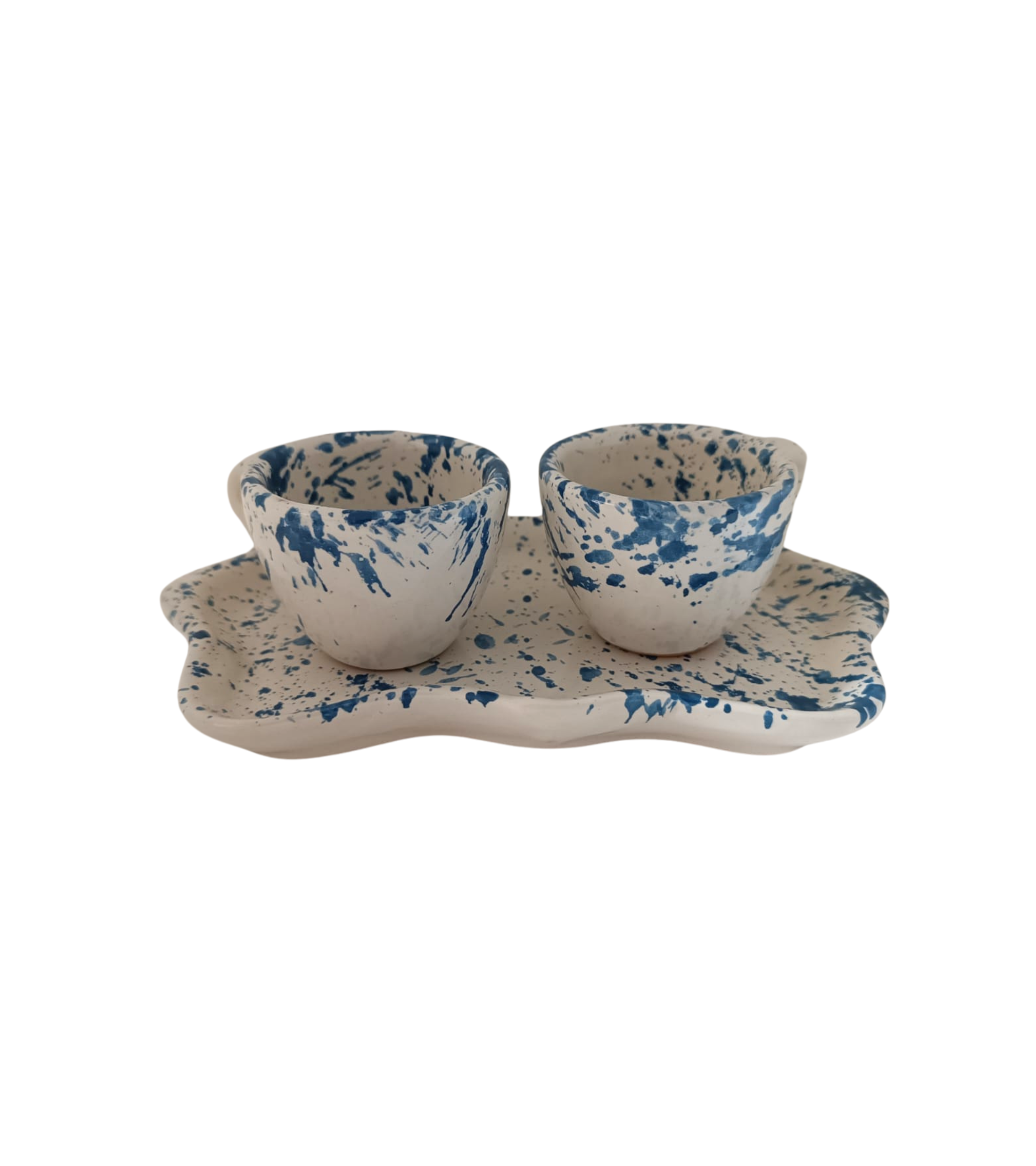 Set tazzine e vassoio schizzato personalizzabile, realizzato e dipinto a mano dai Maestri Ceramisti con materiali e colori atossici.