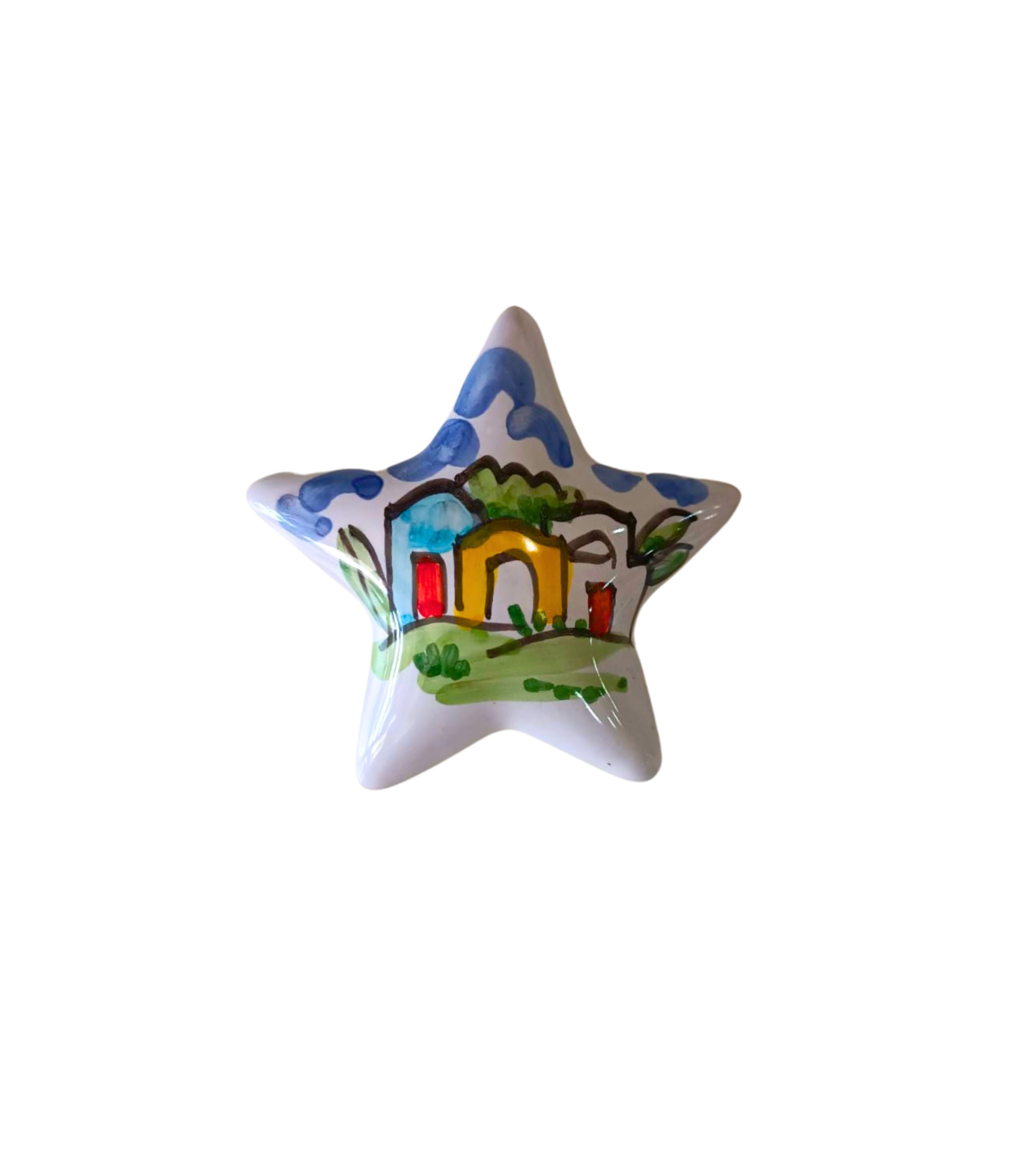 Stella in ceramica vietrese, personalizzabile, realizzata e dipinta a mano dai Maestri Ceramisti con materiali e colori atossici.