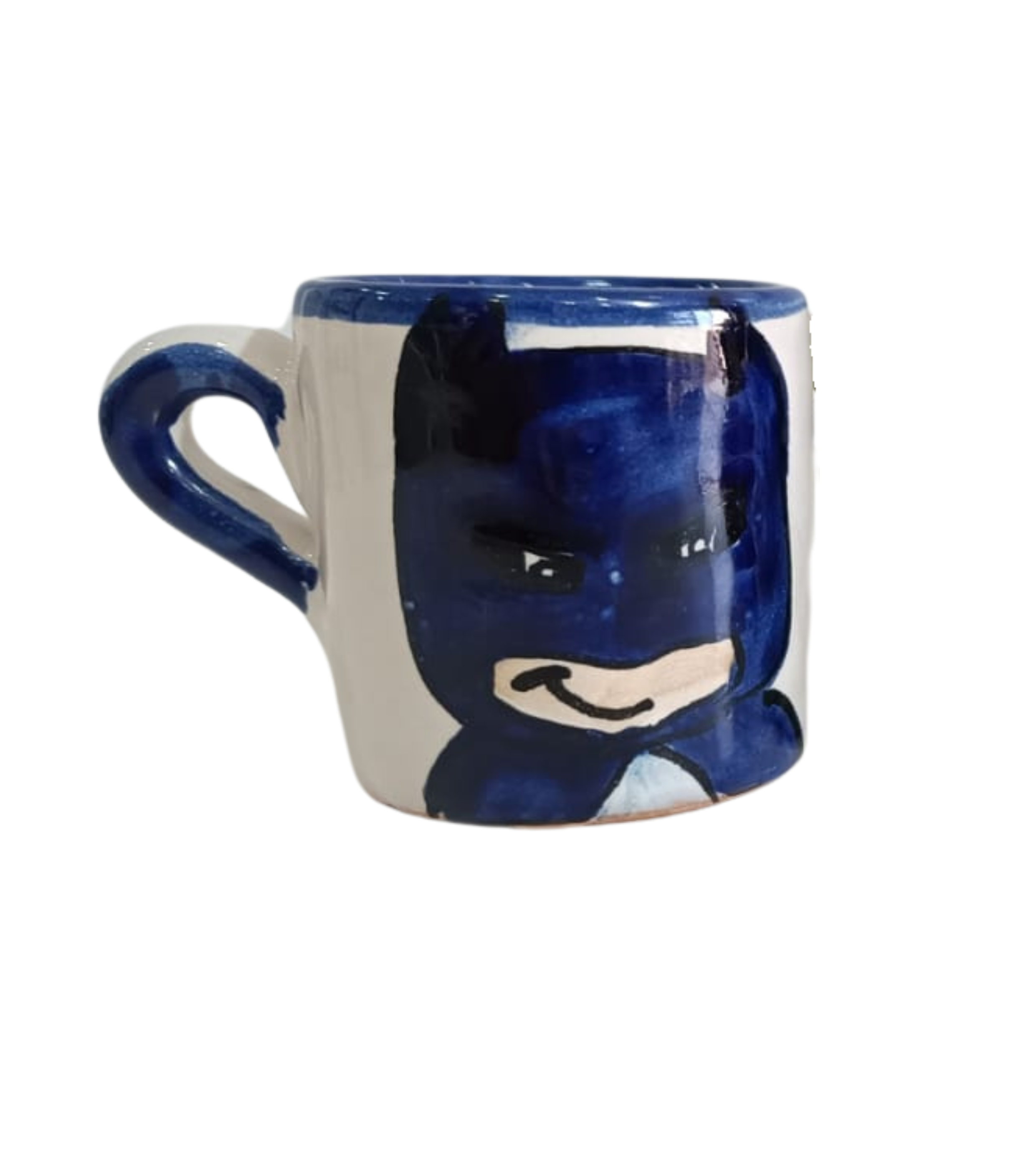 Tazzina supereroi in ceramica vietrese personalizzabile, realizzata e dipinta a mano dai Maestri Ceramisti con materiali e colori atossici.