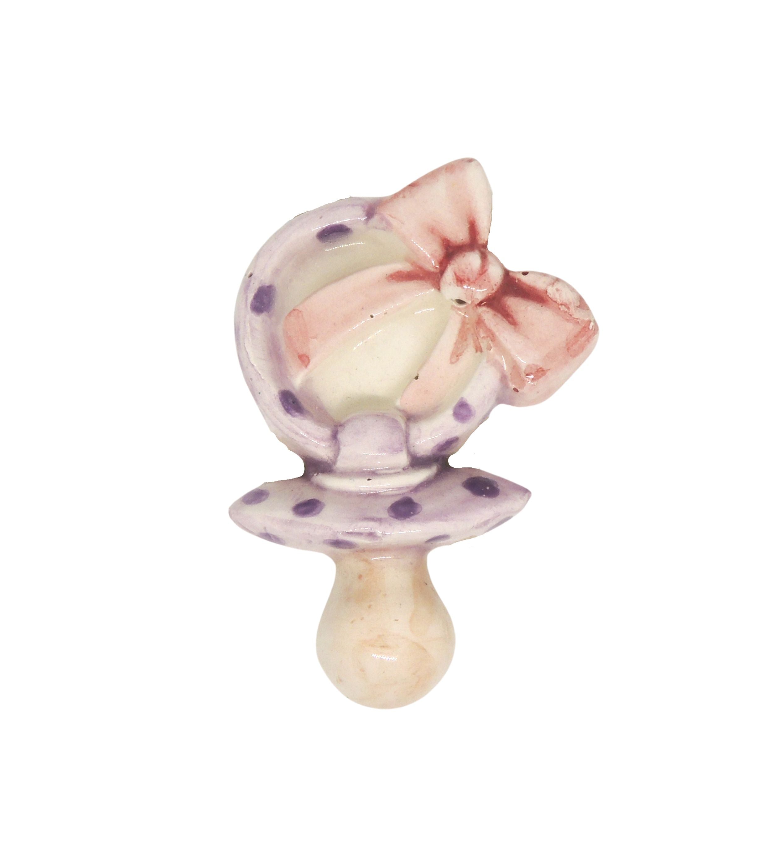 Ciuccio con fiocchetto in ceramica vietrese personalizzabile, realizzata e dipinta a mano dai Maestri Ceramisti con materiali e colori atossici.