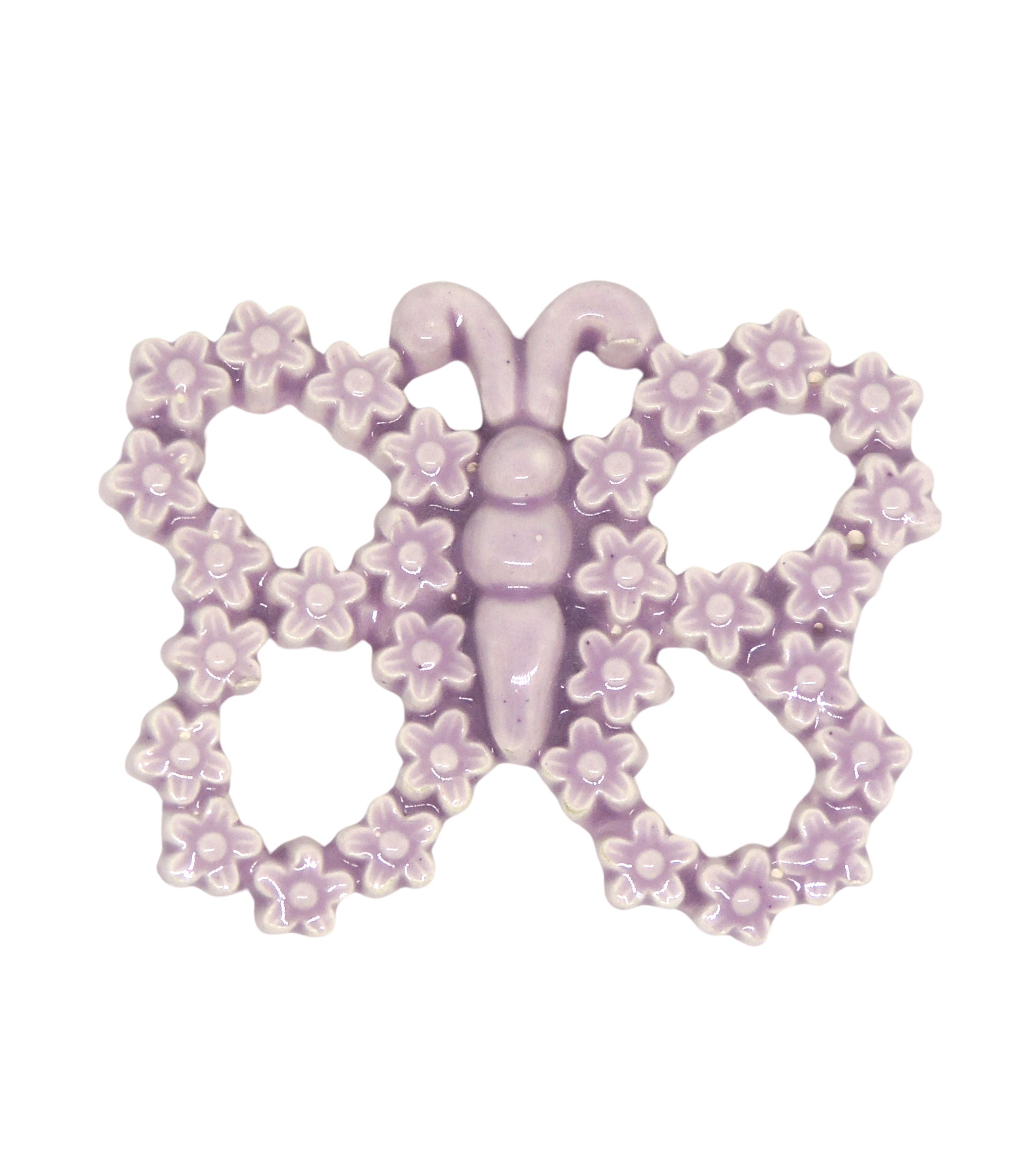Farfalla merletto in ceramica vietrese personalizzabile, realizzata e dipinta a mano dai Maestri Ceramisti con materiali e colori atossici.
