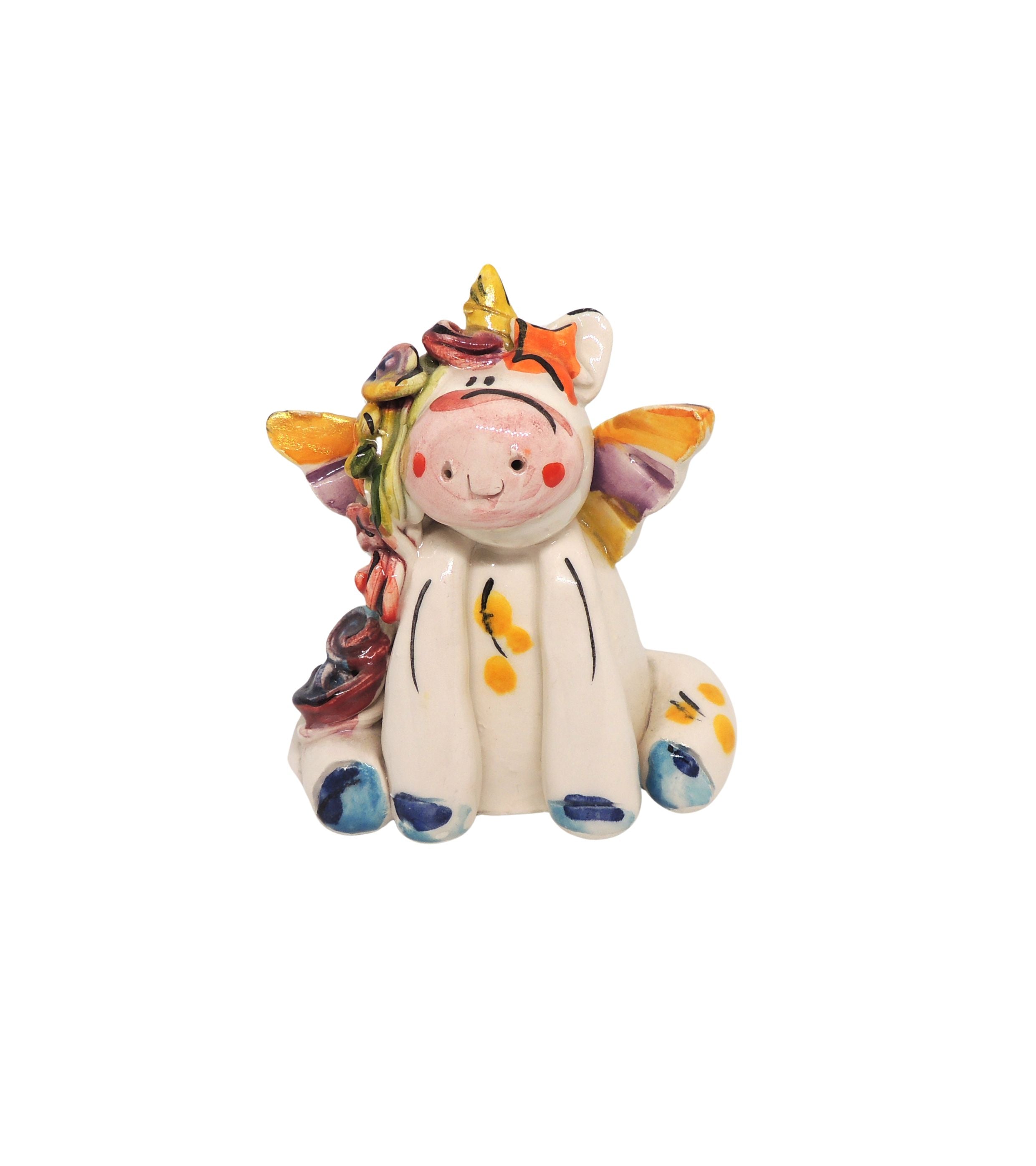 Unicorno in ceramica vietrese realizzato e dipinto a mano dai Maestri Ceramisti con materiali e colori atossici.